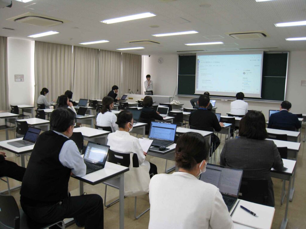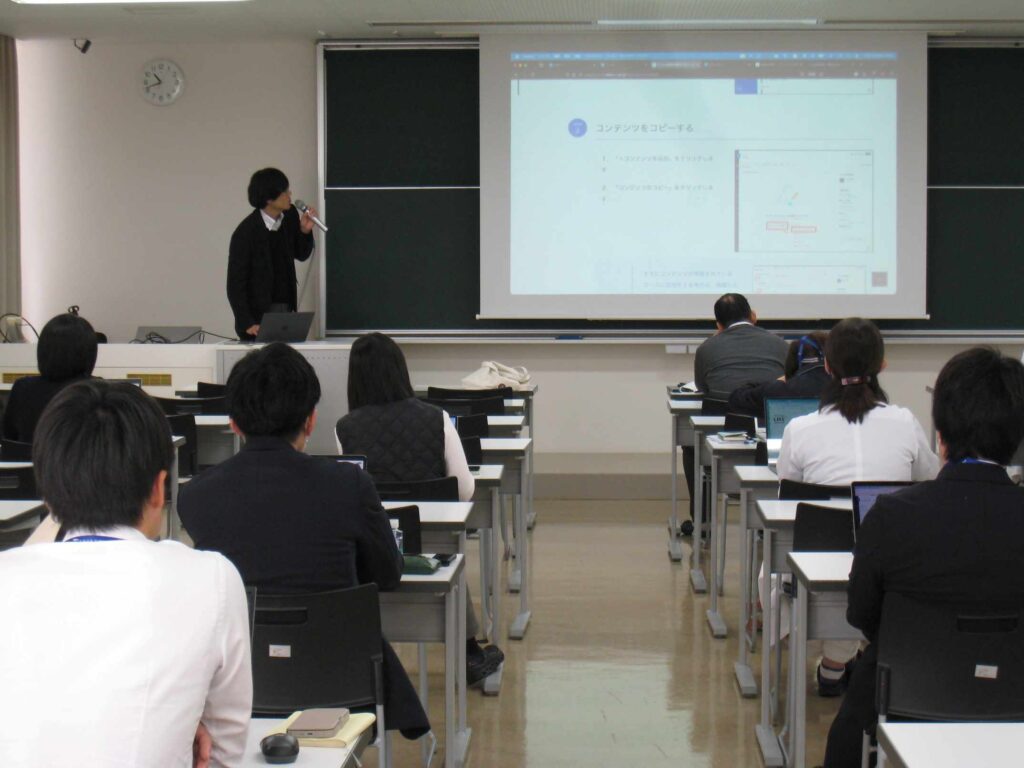 初めにコレオス社より新バージョンLMSの概要説明があり,主な変更点や新機能について理解を深めました.続いて,BYOD×LMS活用講習コース(※)に沿って,実際の授業を想定した学習目標や教材の掲載を行い,参加者がコース構成を体験するワークを実施しました.それと並行して,過去コースからの移行作業を実施する参加者もいました.